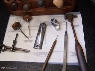 J'ai débuté mon parcours de gravure à l’école Boulle dans la section gravure taille-douce, ce qui m'a amené à travailler le cuivre, le laiton au moyen de burins, d’échoppes ceci afin de graver des bijoux, des blasons, de décorer les objets en métal ou bien réaliser des estampes. Formation très diversifiée qui me permet d’étudier le volume, le dessin et d’enrichir mes méthodes de recherche et de création. J'ai poursuivi mon parcours de graveuse à l’école Léon Mignon(Liège), dans la section gravure sur armes. J’ai travaillé l’acier au marteau-burin, mais aussi l’incrustation, la ciselure, le fond-creux et les scènes animalières.